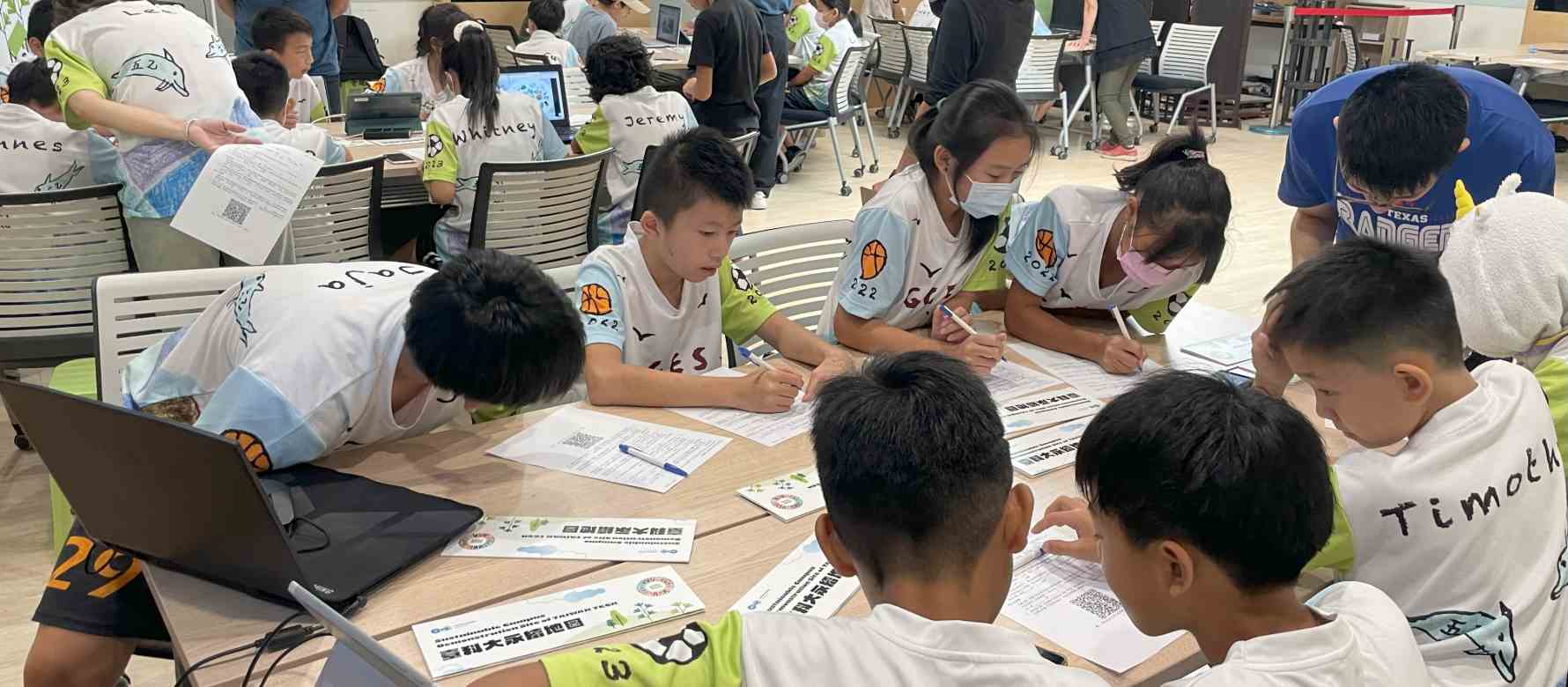 烏雲密布的早晨,雖然感受不到太陽的朝氣,但這無法擋住一群小學生們踏著輕快的步伐前來參加營隊活動的熱情。臺科大師生帶領新北市三芝國小、石門國小、老梅實小的孩童進行帶狀式營隊活動,讓新二代的孩子們更深入地了解社會發展趨勢下的新興職業,拓展他們對未來職涯的多元視野。同時,透過從東南亞的另一個家鄉角度,讓孩子們認識SDGs在不同國家實踐發展的趨勢,培養他們以多元文化視角了解社會趨勢的能力。另也帶領國小生來到臺科大的教學場域,讓孩子們認識不一樣的學習環境,也可讓孩童看到更寬廣的視野,使他們未來有更多發展的可能。
